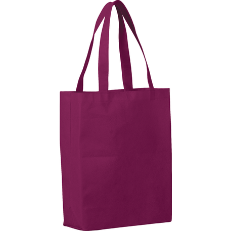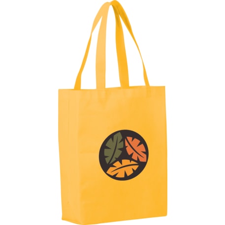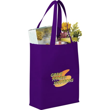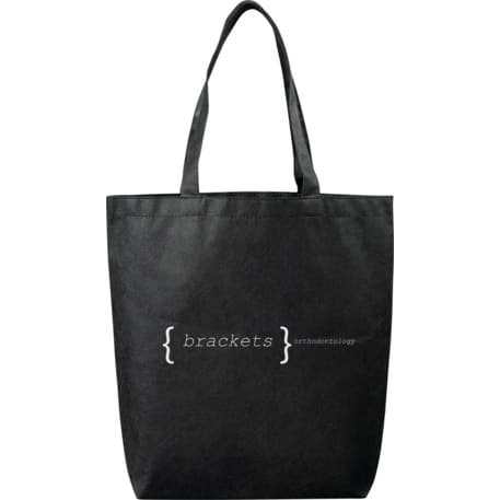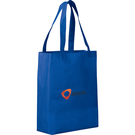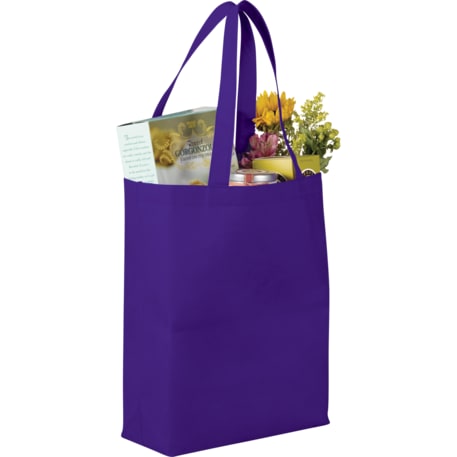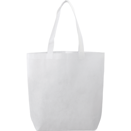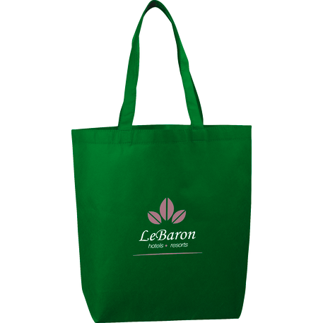 The Eros Non-Woven Tote has an open main compartment with double 20 inch handles. It's also reusable and a great alternative to plastic bags. Polypropylene is recyclable with #5 plastics please check with your local municipalities for specific rules and regulations.