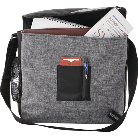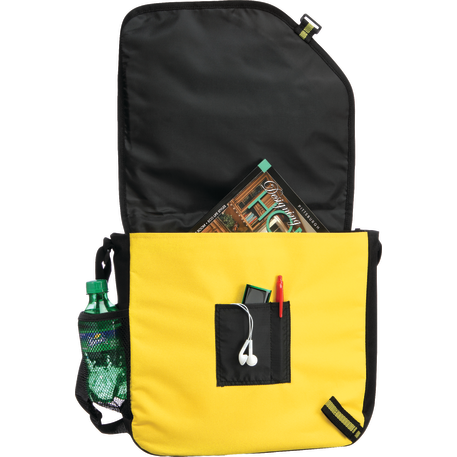 The Stormy Slim Messenger Bag features an open main compartment with a hook and loop flap closure. Accessory pockets can be found under the flap and there's a mesh pocket on side. An adjustable shoulder strap and reinforced top carry handle make it convenient to carry.