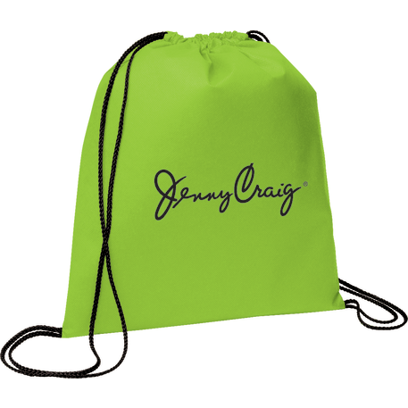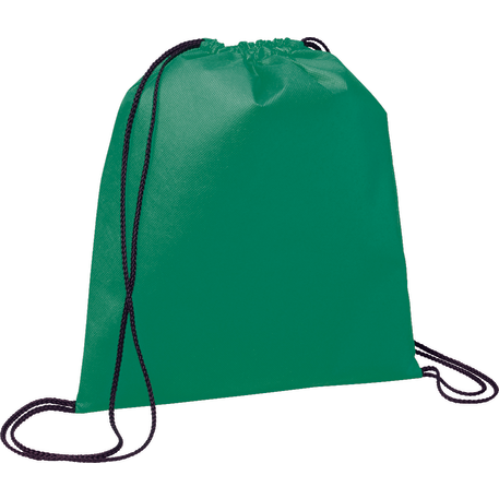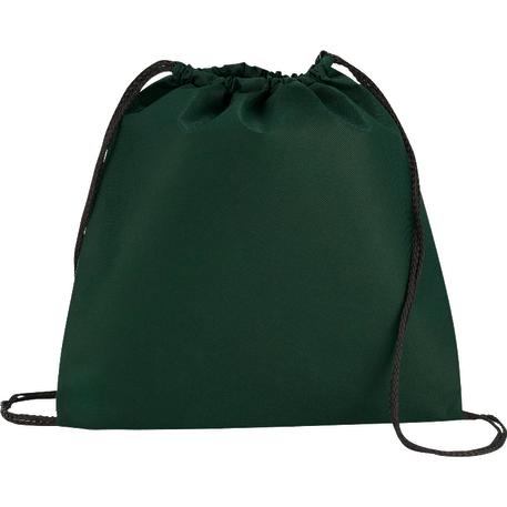 The Evergreen Non-Woven Drawstring Bag has an open main compartment with a convenient cinching rope closure.