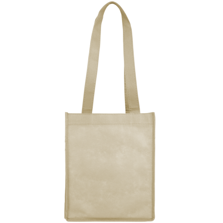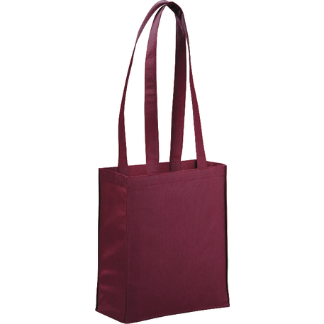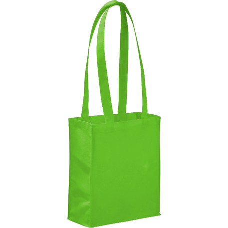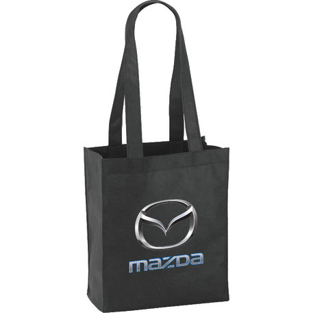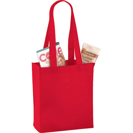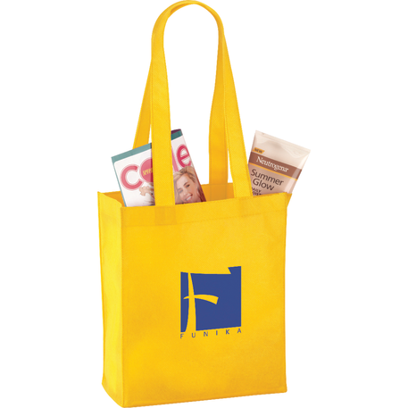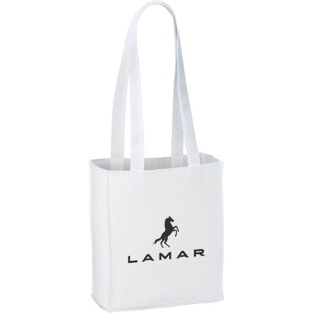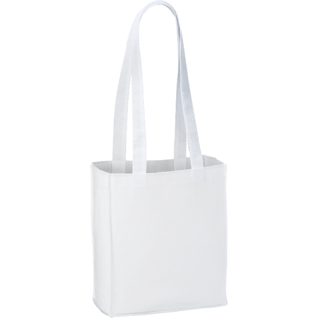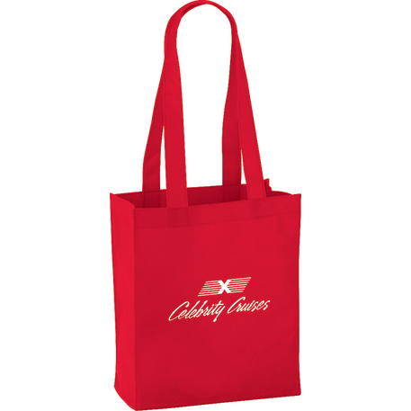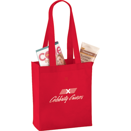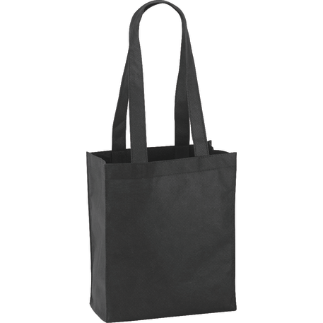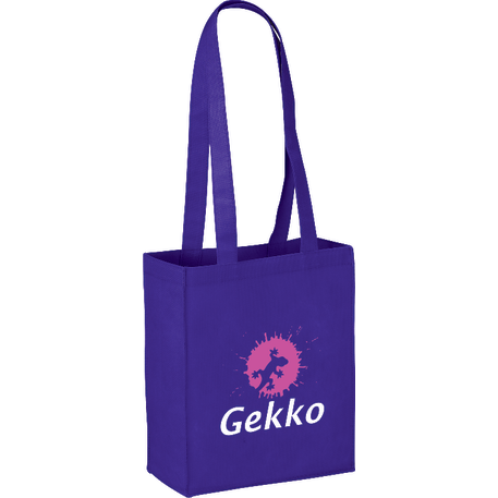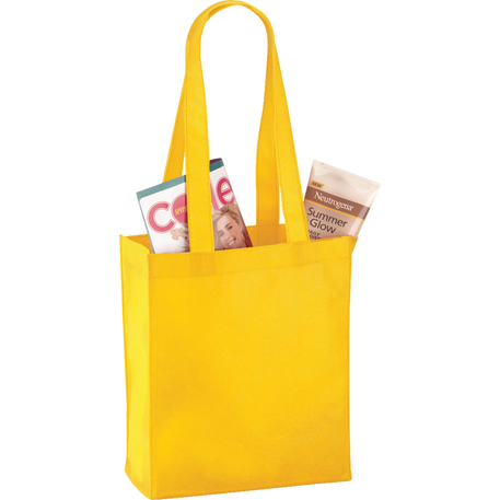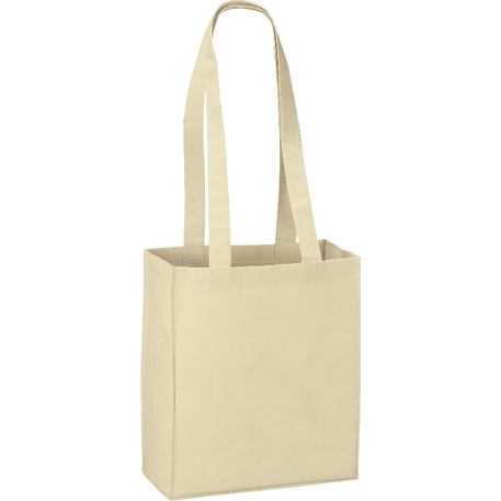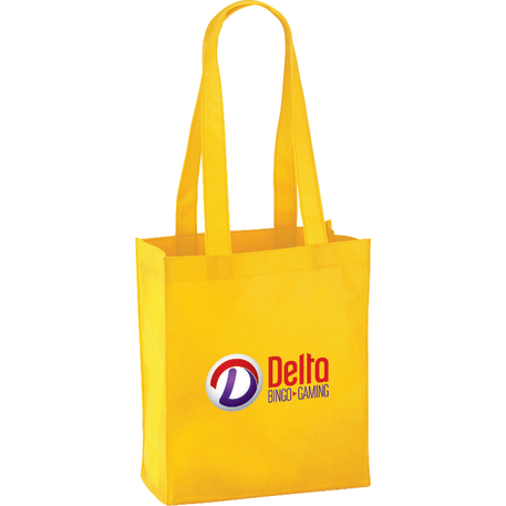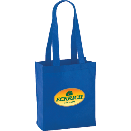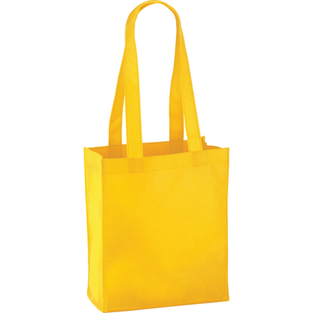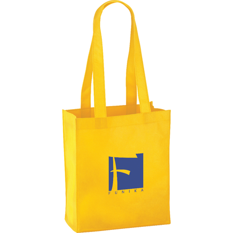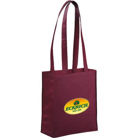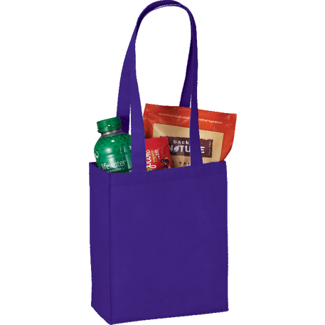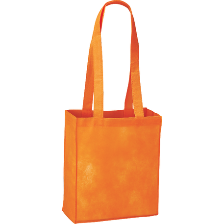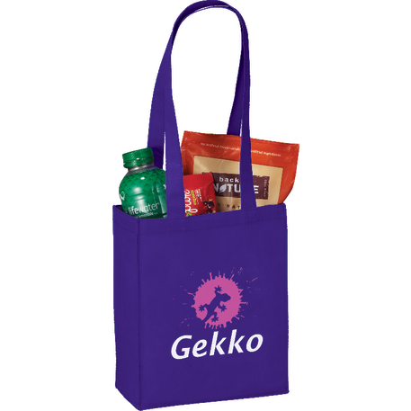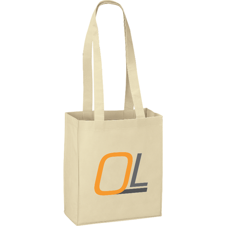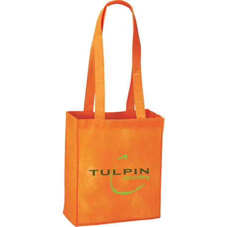 The Mini Elm Non-Woven Tote features an open main compartment with double 24 inch handles. It's also reusable and a great alternative to plastic bags. Disclaimer: Gusset & Handle Decorating is Transfer Only and does not qualify for one day turn. Polypropylene is recyclable with #5 plastics please check with your local municipalities for specific rules and regulations.