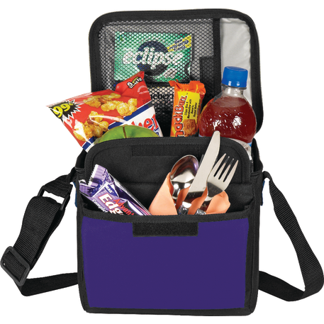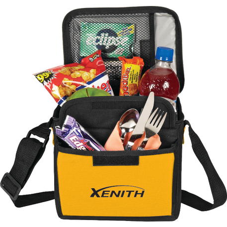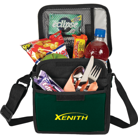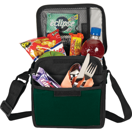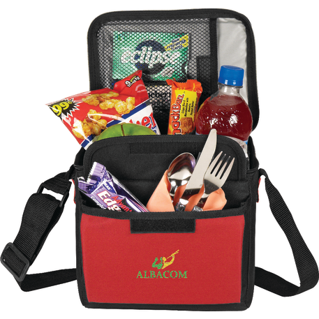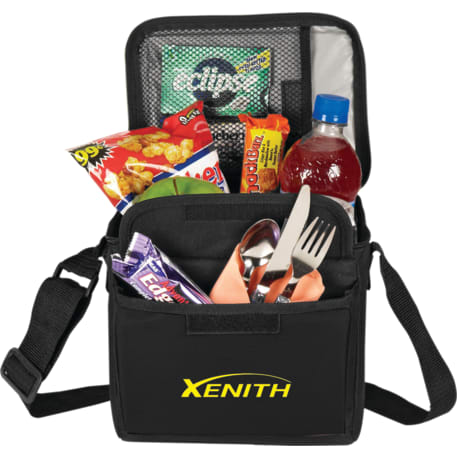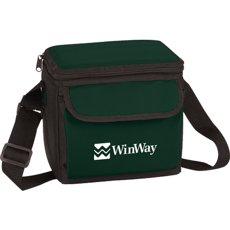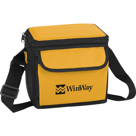 The 6-Can Lunch Cooler comes with PEVA insulation. It also has a zippered main compartment, a front gusseted pocket with a hook and loop closure and an inside mesh pocket with a hook and loop closure. It also comes with a conveniently adjustable shoulder strap.