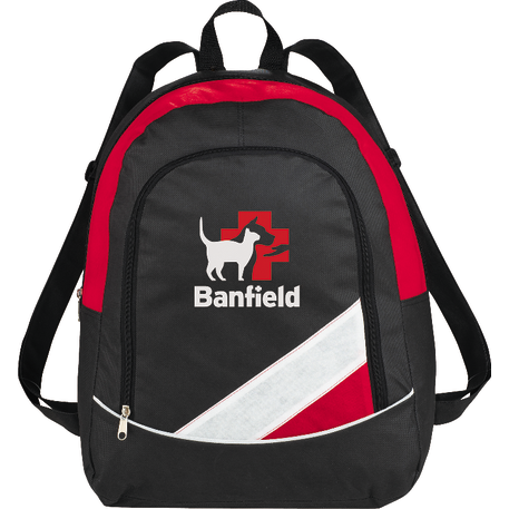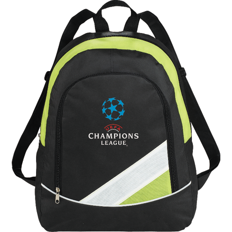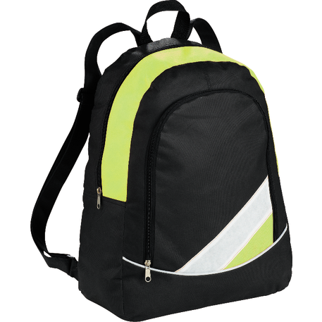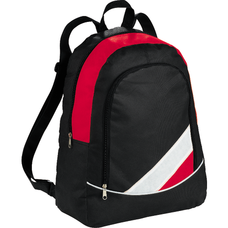 The Thunderbolt Deluxe Backpack has a large zippered main compartment, a zippered front pocket and double adjustable shoulder straps with a top carry handle.