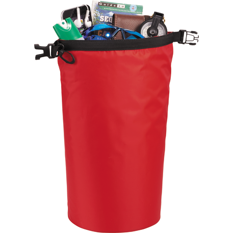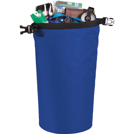 The Survivor 5-Liter Waterproof Outdoor Dry Bag features a roll-top closure with a plastic buckle to keep your valuables dry and safe for outdoor activities. Easily snaps on to a bag or belt.