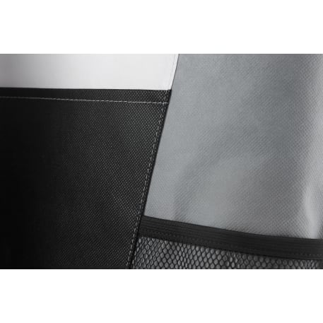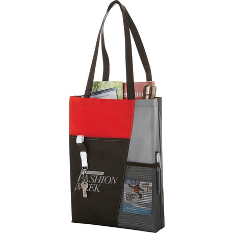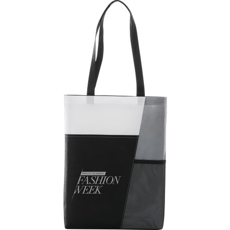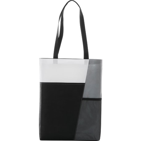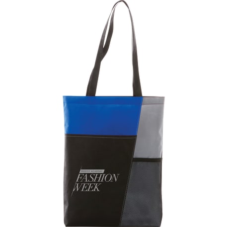 The Trip Non-Woven Convention Tote is ideal for trade shows and conventions and features an open main compartment, open front pocket and a mesh water bottle pocket and 13 inch drop handles. Polypropylene is recyclable with #5 plastics please check with your local municipalities for specific rules and regulations.