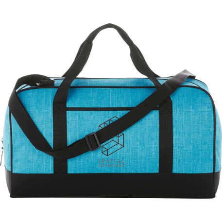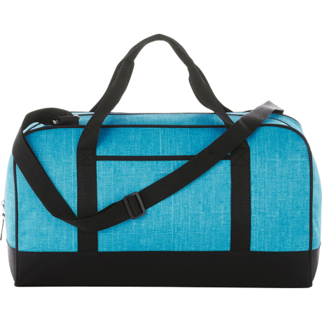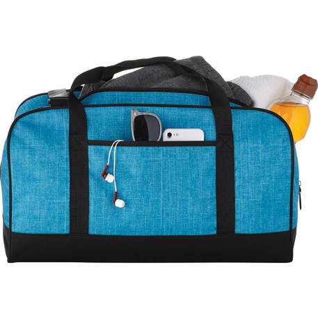 The Heather 18" Duffel Bag has a zippered main compartment and an open front pocket, plus an adjustable shoulder strap and dual carry handles. Disclaimer: There may be minor variations in color of the actual product due to the nature of the fabric dyes, weaves and printing.