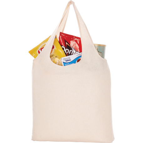 The Grocery 5oz Cotton Canvas Tote features an open main compartment with 10 inch drop handles. Completely reusable, it's a great alternative to plastic bags.
