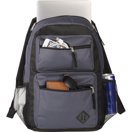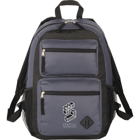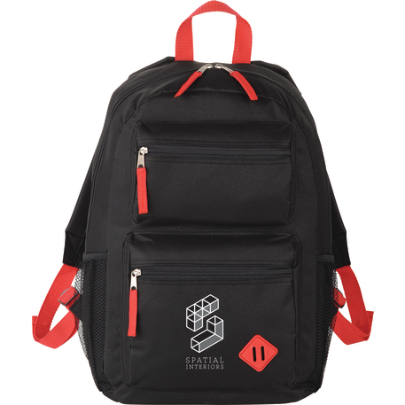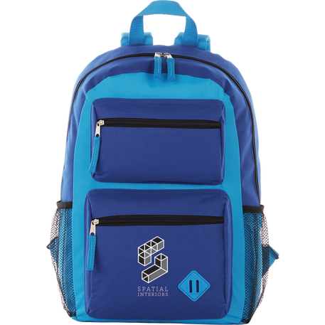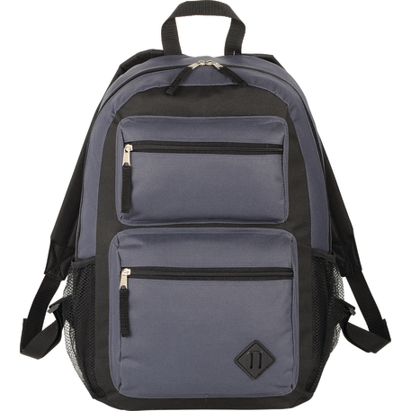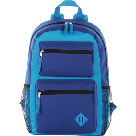 The Double Pocket Backpack has a zippered main compartment. Two front zippered pockets with lash tab accent and added shoulder straps and a grab handle make it a stylish option for on the go.