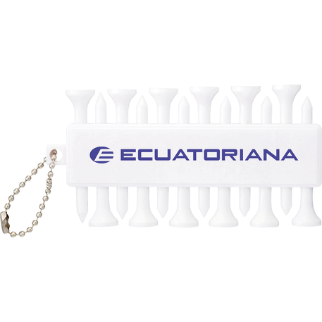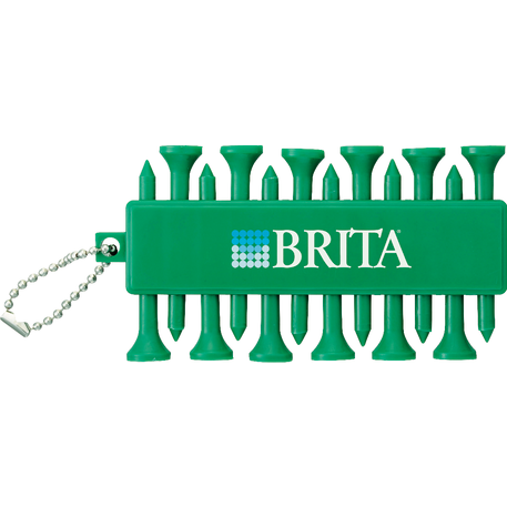 The Golf Buddy features 12 golf ball tees and 3 golf ball markers on a beaded chain.