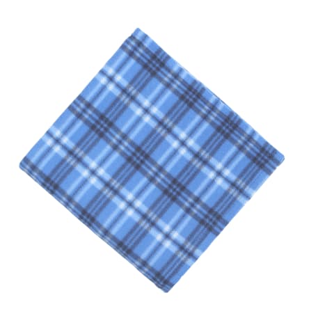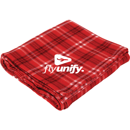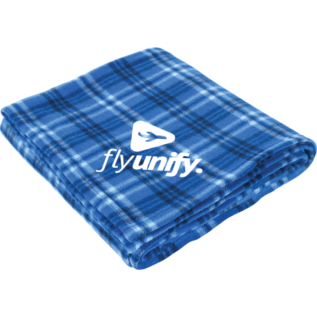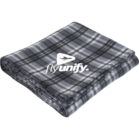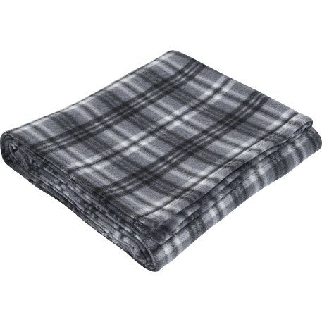 The plaid fleece blanket measures 50" H x 60" W unfolded and 12.5" L x 5" D rolled. It features a trendy pattern making it perfect for any occasion. This blanket is spot clean only.