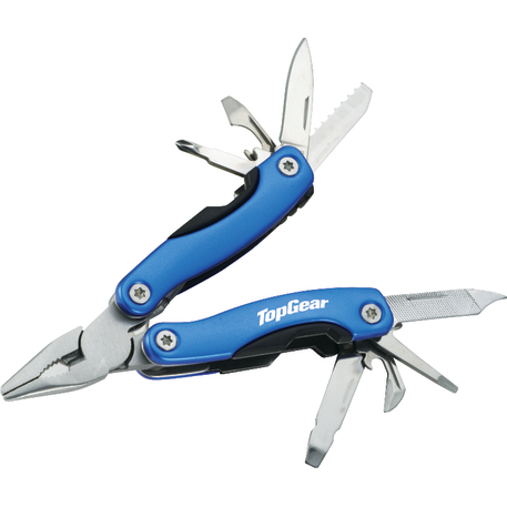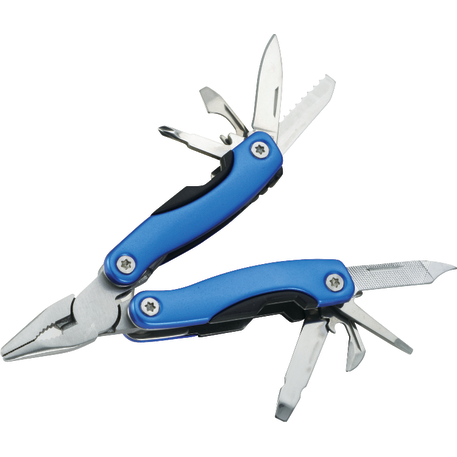 The Tonca 11-Function Multi-tool functions include a pair of pliers, a knife blade, a ruler and scale, a Phillips-head screwdriver, a flat-head screwdriver, a bottle opener, a can opener, saw blade, and nail file. Includes a nylon storage pouch with a belt loop. Imprint available on the multi-tool only.