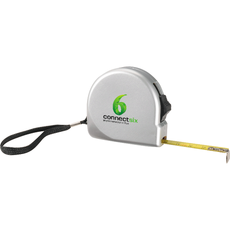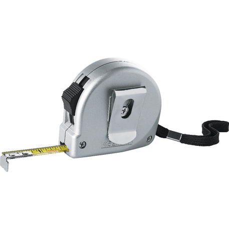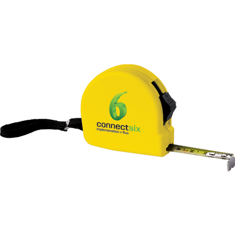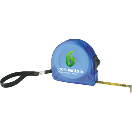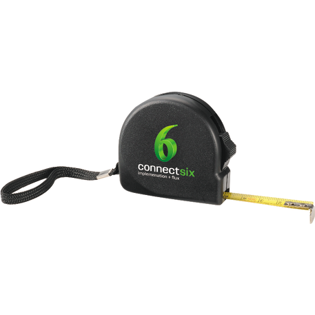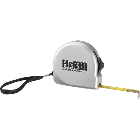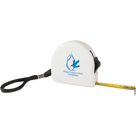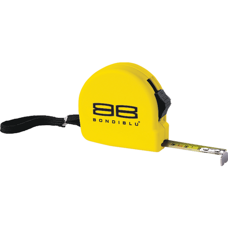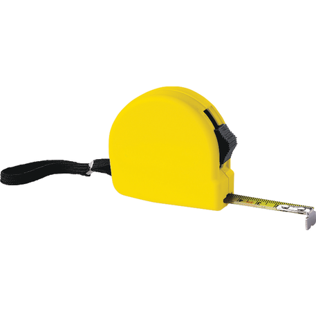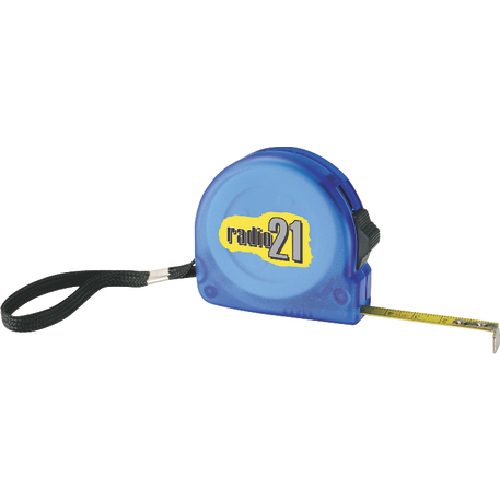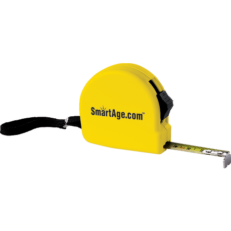 The Handyman Locking Tape Measure features a 10-foot retractable tape measure with standard and metric measurement, woven nylon wrist strap and a metal belt clip A slide-locking button locks the tape in place.
