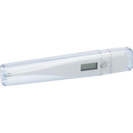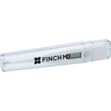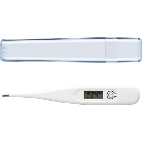 The Digital Thermometer features a digital LCD display that measures the temperature in Fahrenheit or Celsius. The temperature reading will occur after 30 seconds and an audio sound alerts you when completed. It features an automatic shut-off feature and includes a clear, 2-piece protective travel case. Battery is replaceable and has an average life of 2 years. Only available for shipment within the United States (including Alaska, Hawaii & Puerto Rico). Not available for export.