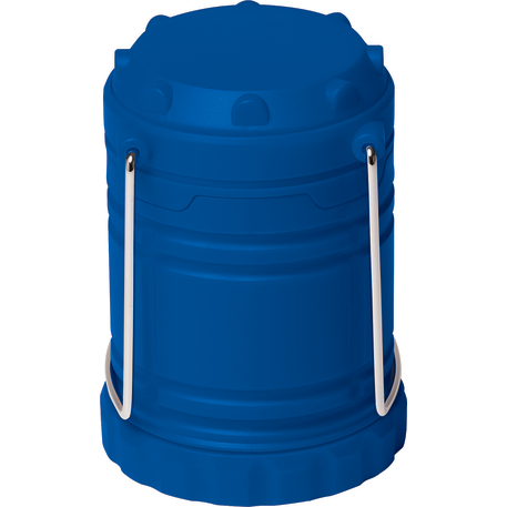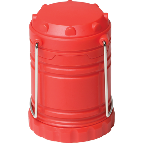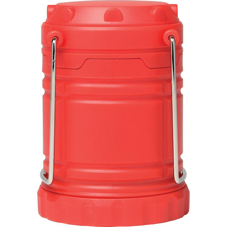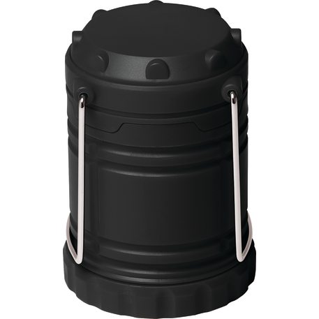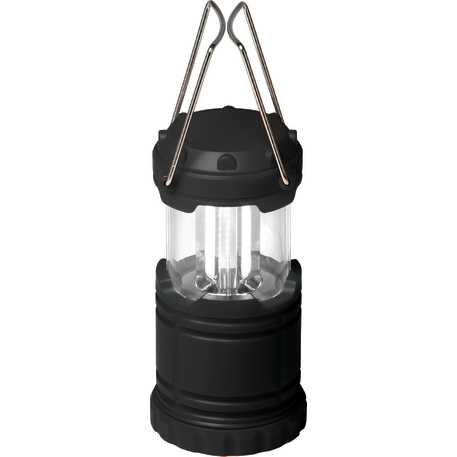 COB lantern turns on by sliding open and turns off by closing. Features metal carry and hanging handle. 5.5" fully extended. Includes 3 AAA batteries.