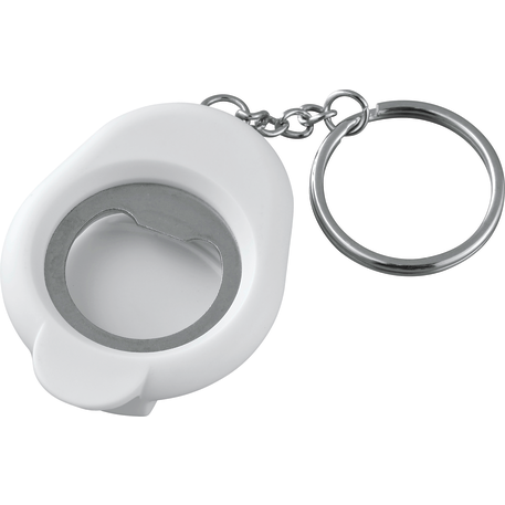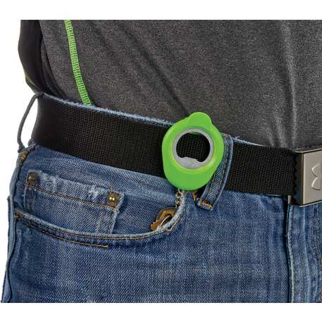 The Hang On Your Pocket Keychain/Bottle Opener can easily open both bottles and flip-top cans. It also includes a metal key ring.