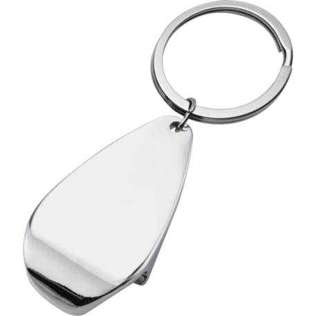 The Deluxe Bottle Opener opens bottles and flip-top cans and comes with a metal split key ring.