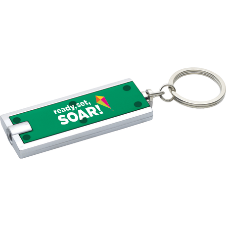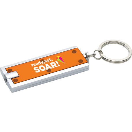 The Rectangular Key-Light includes a single white LED light and a metal split key ring. Simply squeeze to turn on the light.