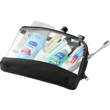 The PVC Cosmetic Bag features a clear, zippered main compartment for all your travel sized needs.