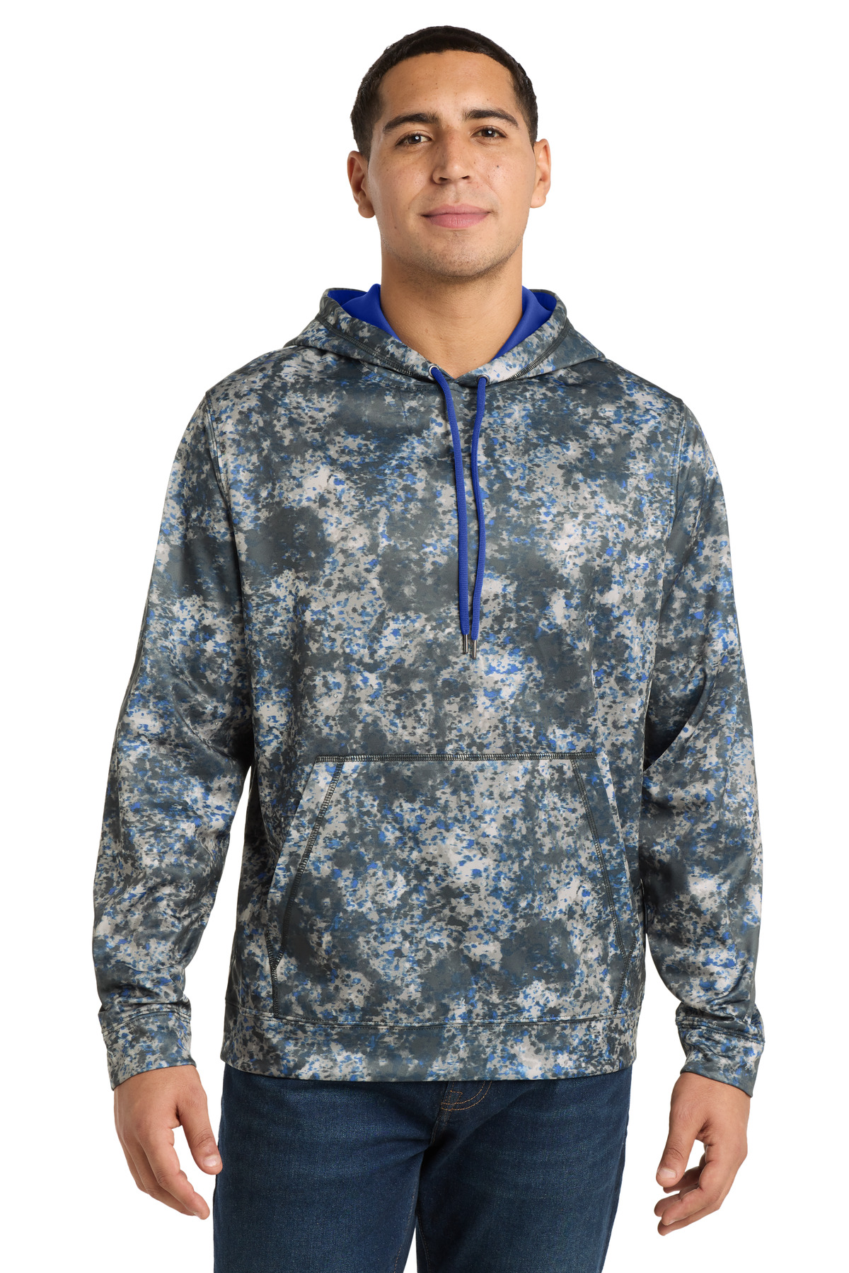 With its allover Mineral Freeze sublimated print this moisture-wicking pullover combines a natural granite look with high-tech performance. 5.5-ounce 100% polyester Anti-static Three-panel hood Solid self-fabric hood lining Solid dyed-to-match drawcords with metal tips Taped neck Self-fabric cuffs and hem Front pouch pocket*Please note: This product is transitioning from woven labels to tag-free labels. Your order may contain a combination of both labels