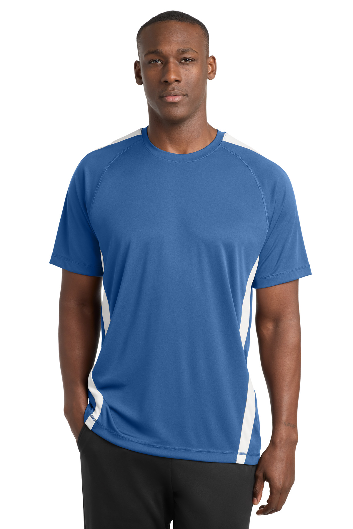 This tee is moisture-wicking economical and colorful with colorblock panels on shoulders and sides as well as PosiCharge technology to ensure the color and logos endure. 3.8-ounce 100% polyester interlock with PosiCharge technology Removable tag for comfort and relabeling Raglan sleeves