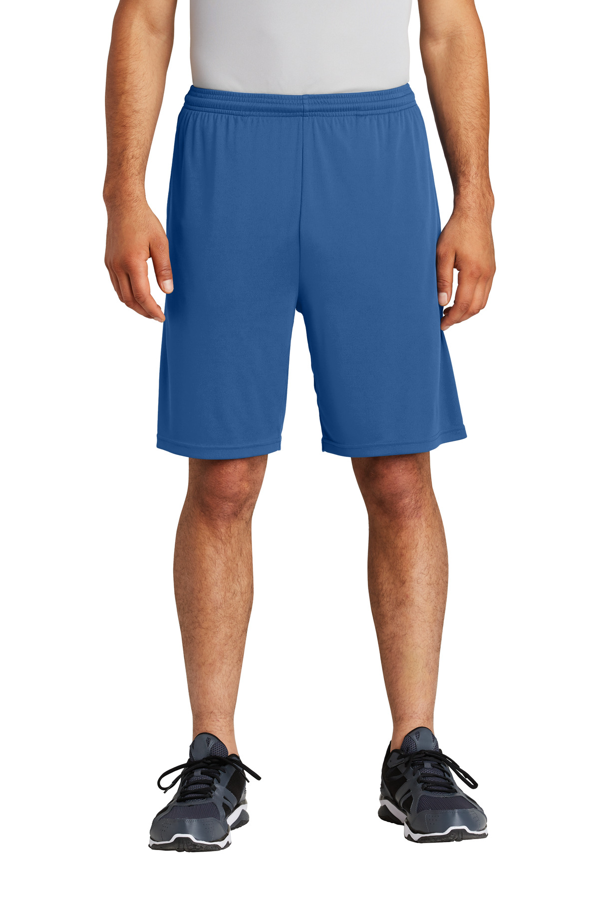 Our lightweight unlined short with pockets wicks moisture and locks in colors. 3.8-ounce 100% polyester interlock with PosiCharge technology Removable tag for comfort and relabeling Elastic waistband Continuous loop drawcord Side pockets 9-inch inseam