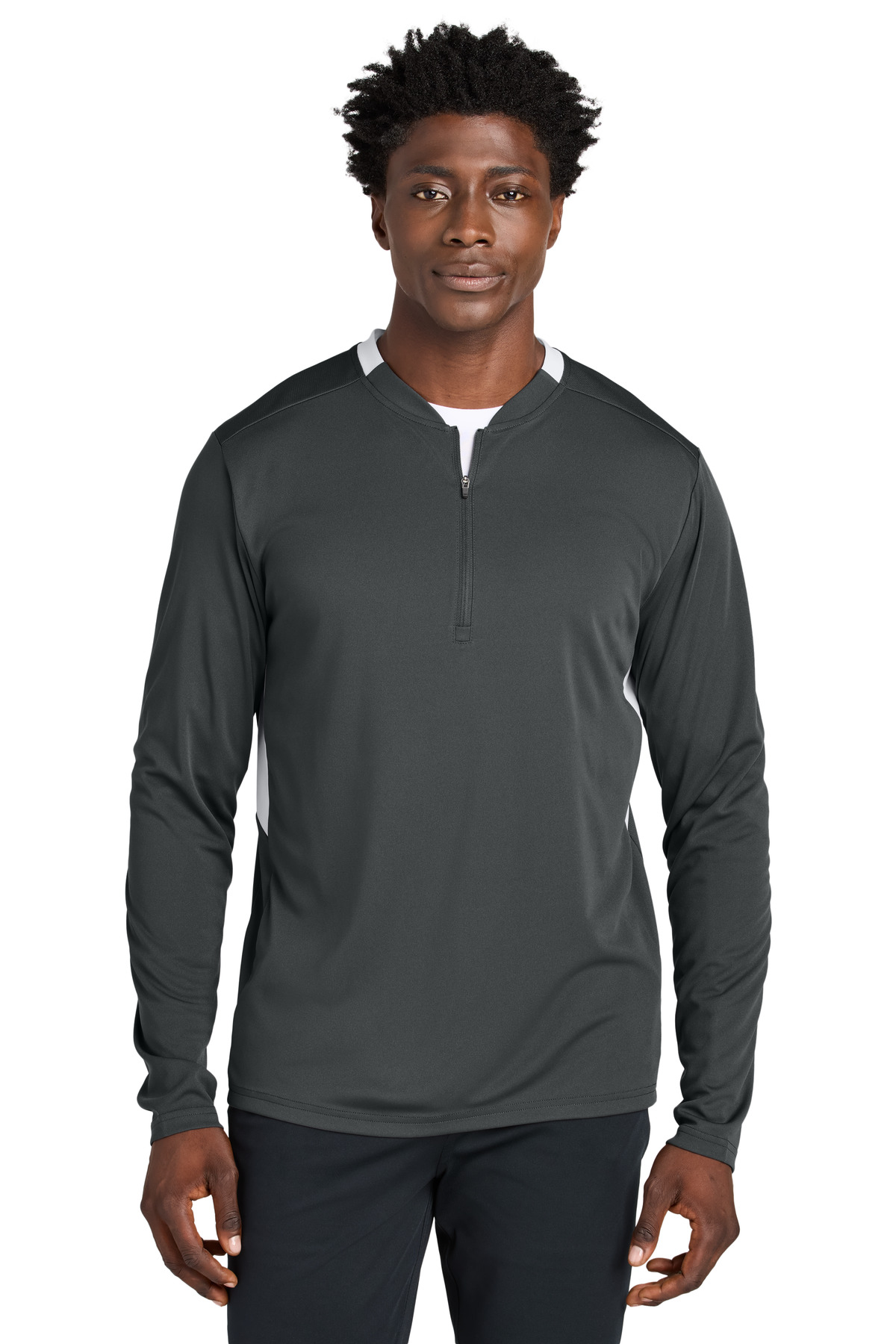 4.4-ounce 100% recycled polyester interlock with PosiCharge technology body 4.1-ounce 100% recycled polyester ultra-fine flat back mesh with PosiCharge technology This products carbon footprint has been measured and reduced through a combination of preferred materials and investing in carbon offset projects though the ClimeCo Certified Product Program Moisture-wicking Odor-resistant Mesh back panel and collar piecing Colorblocked mesh upper side panels Dyed-to-match reverse coil zipper Tear-away labelA C-FREE Product