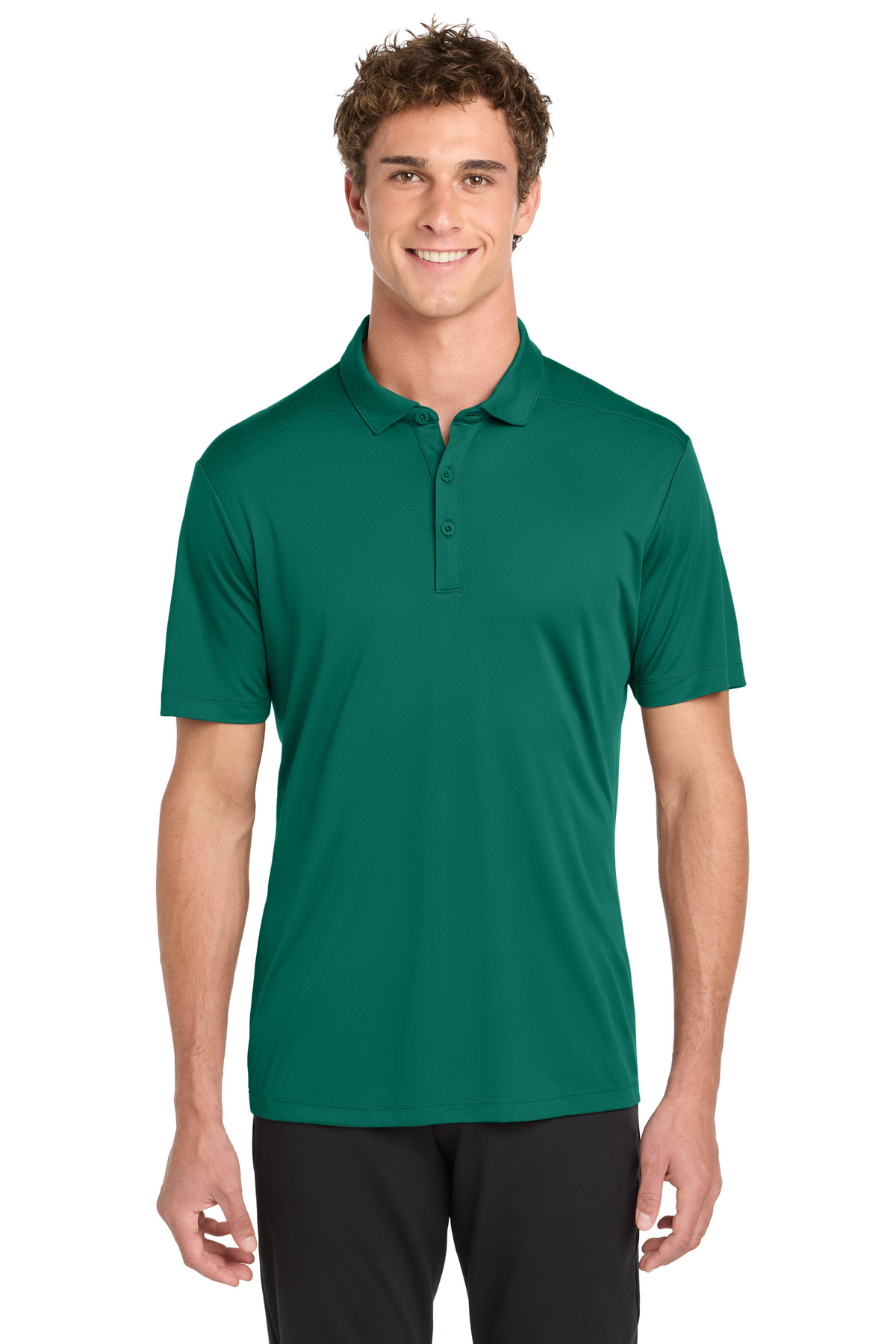 Designed for game day or the work day these breathable polos offer a soft matte hand and deliver exceptional UV protection PosiCharge color-locking technology and moisture wicking. 4-ounce 100% polyester interlock with PosiCharge technology UPF rating of 50 Removable tag for comfort and relabeling Self-fabric collar with collar stand Taped neck 3-button placket with dyed-to-match buttons Set-in open hem sleeves