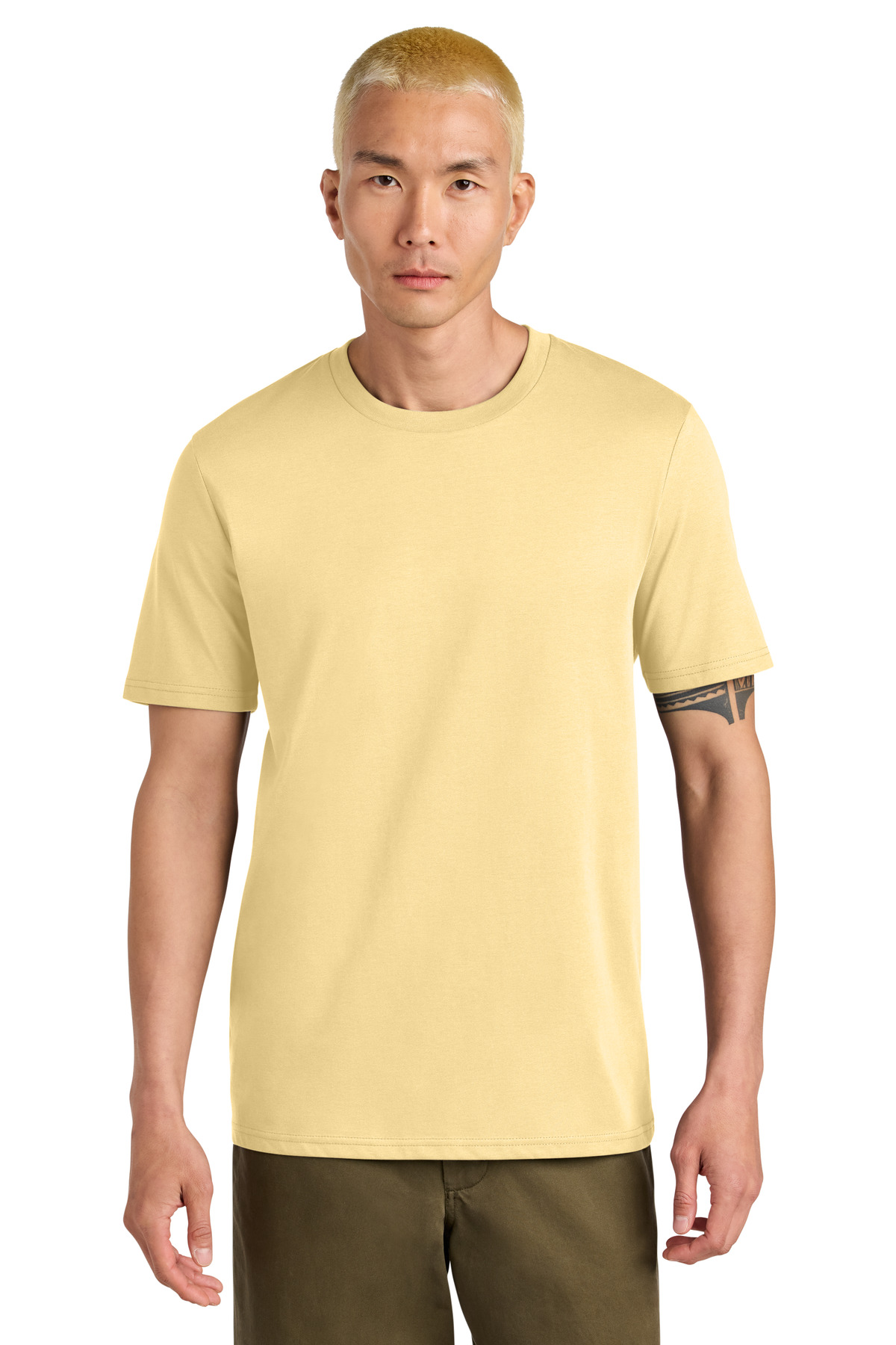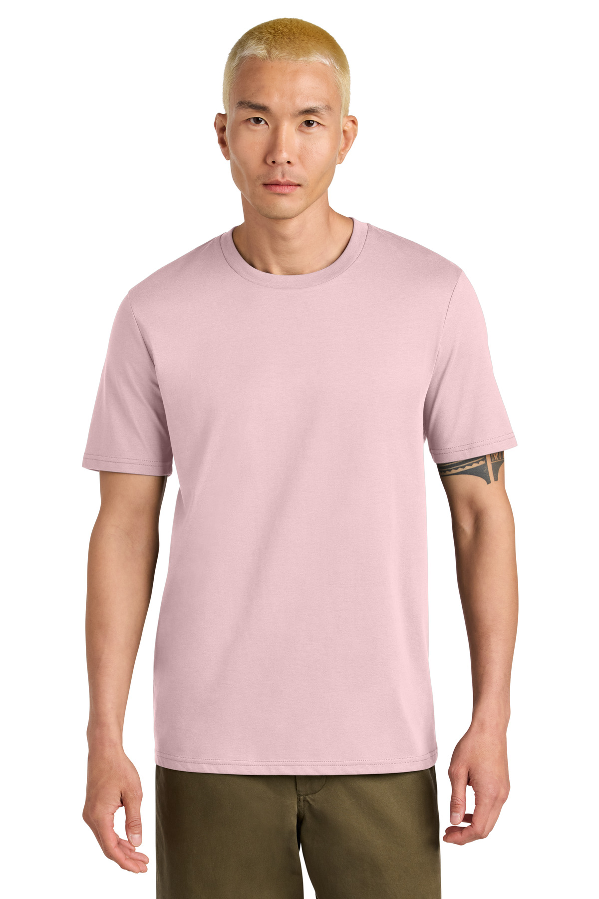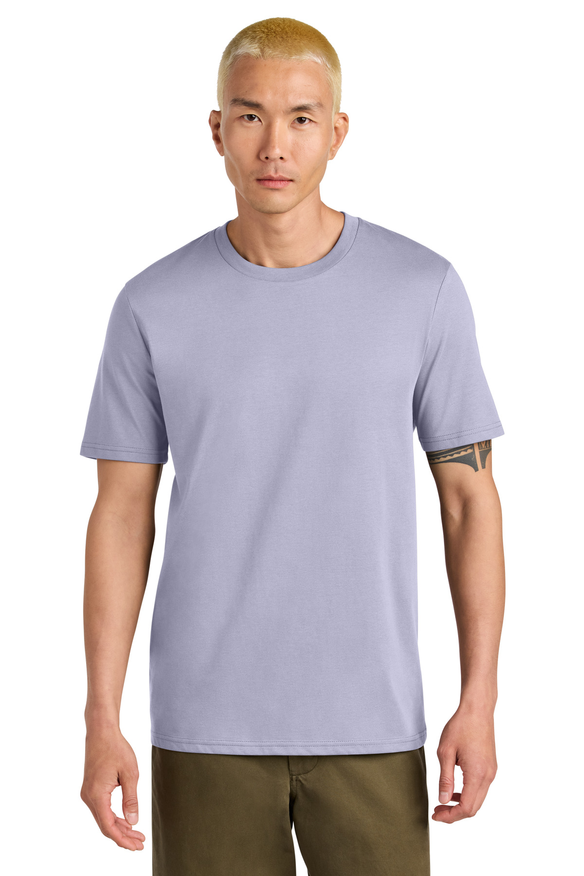 A premium essential for anyones wardrobe. Crafted with sustainable organic cotton this teee provides an exceptional decorating surface. 5.3-ounce (180 GSM) 100% organic combed ring spun cotton 24 singles 1x1 rib knit neck Self-fabric back neck taping Double-needle topstitched sleeves and hem 100% recycled polyester tear-away label Colors up to 5XL: Anthracite Black Burgundy French Navy Glazed Green Heather Grey Natural Raw Red Stargazer White Worker BlueNatural Raw: Made with uncleaned carded fibers for a natural look and feel with minimal processing. Some surface pilling may occur which is normal and wont affect the quality.Modern medium fit: Designed for a roomier fit opened up across the chest and shoulders.