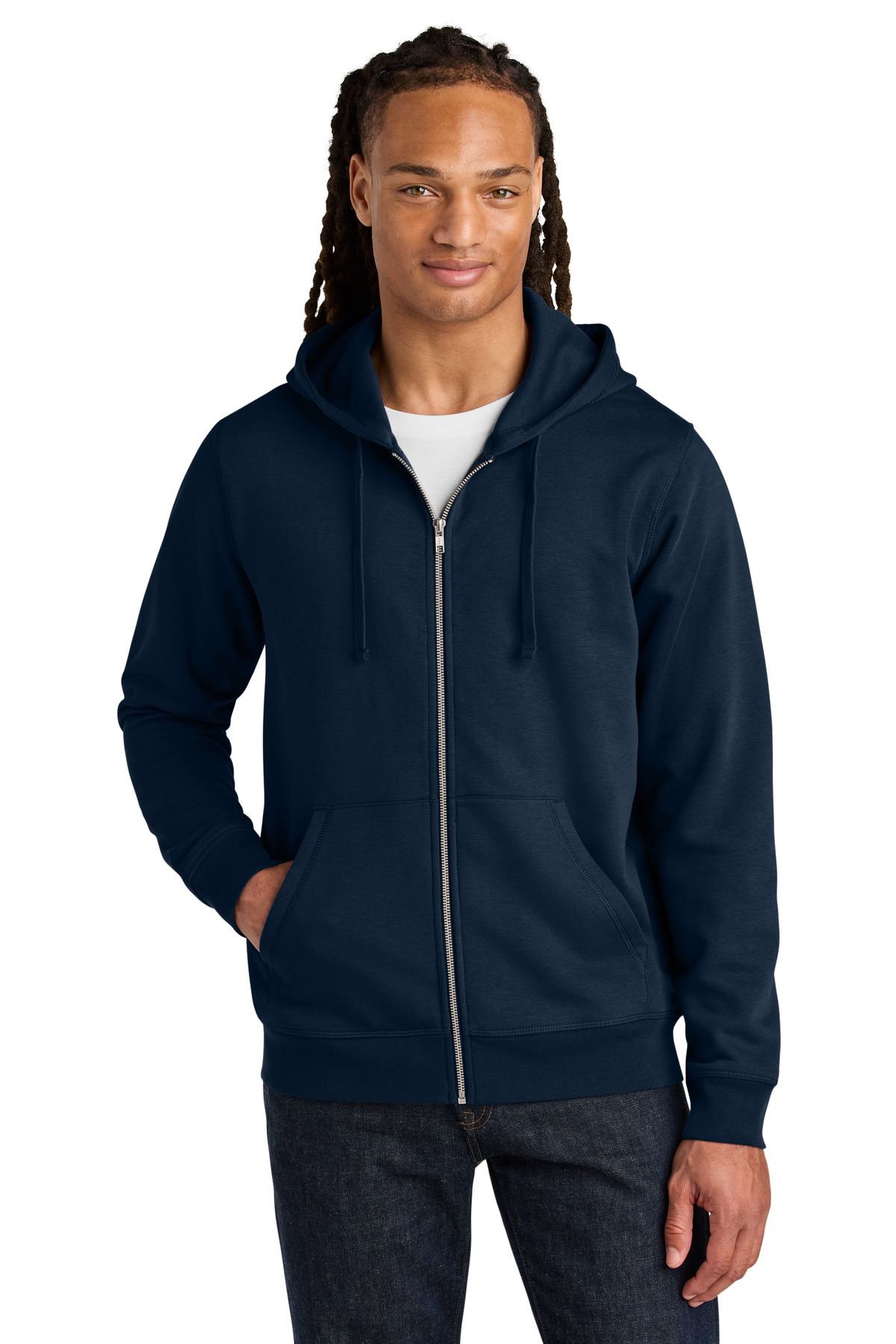 A zipped hoodie that puts your brand in the spotlight. This midweight style is both sustainable and versatile ideal for year-round layering. 8.3-ounce (280 GSM) 80% organic combed ring spun cotton/20% recycled polyester brushed 3-end fleece cotton face Self-fabric lined hood Dyed-to-match flat drawcords Stitched buttonhole eyelets Herringbone back neck taping and inside zipper Self-fabric half moon at back neck Exposed center front metal zipper 1x1 rib knit cuffs and hem Triple-needle topstitch on all seams Front pouch pockets with flat topstitch 100% recycled polyester tear-away label Colors up to 5XL: Anthracite Black Bottle Green French Navy Heather Grey Red Vintage White WhiteMedium fit: Designed for a tidy fit trim across the shoulders.