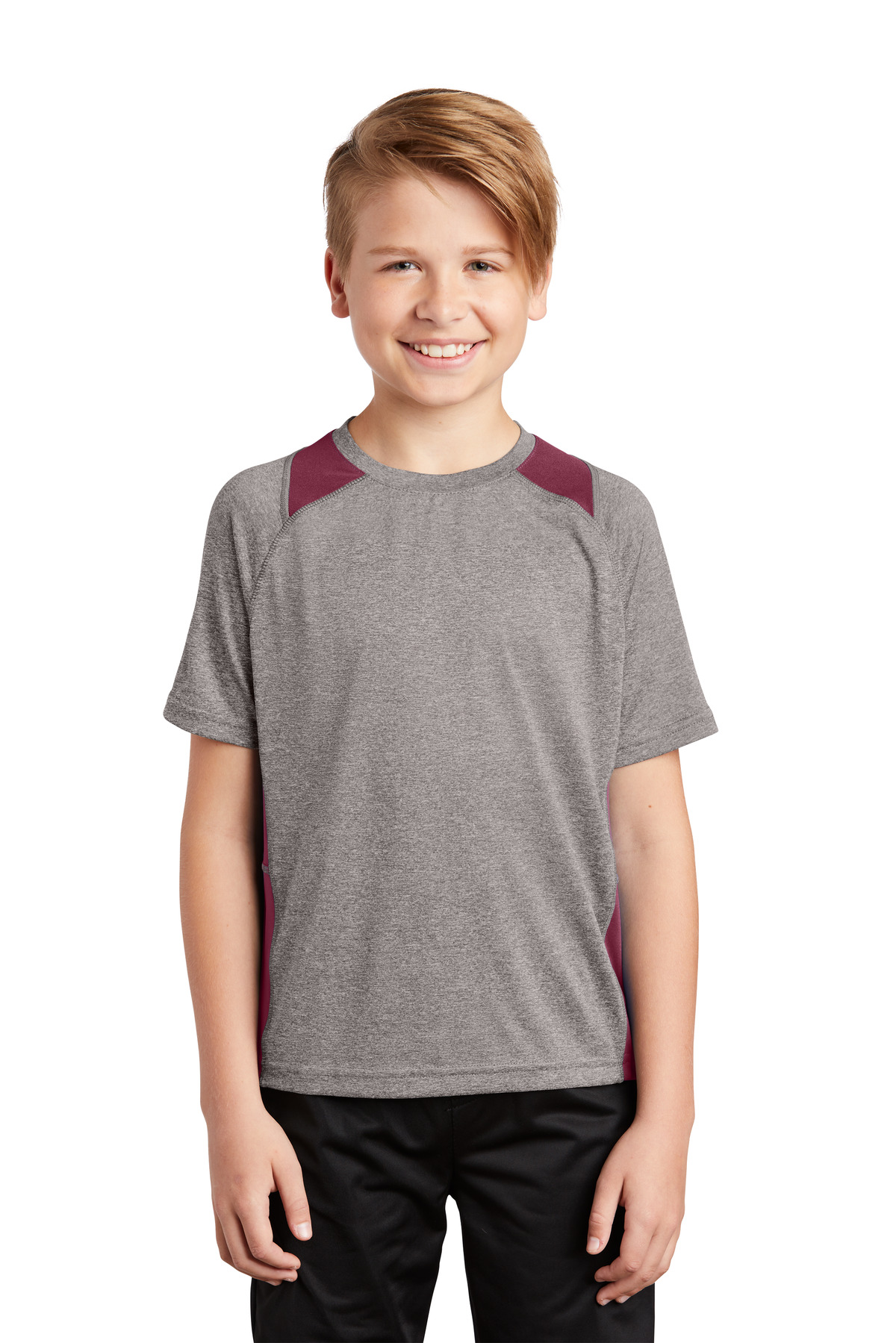 Extra color at the neck and sides with exceptional breathability moisture-wicking snag-resistant performance and value.3.8-ounce 100% polyester jersey 3.8-ounce 100% polyester interlock panels Removable tag for comfort and relabeling Raglan sleeves